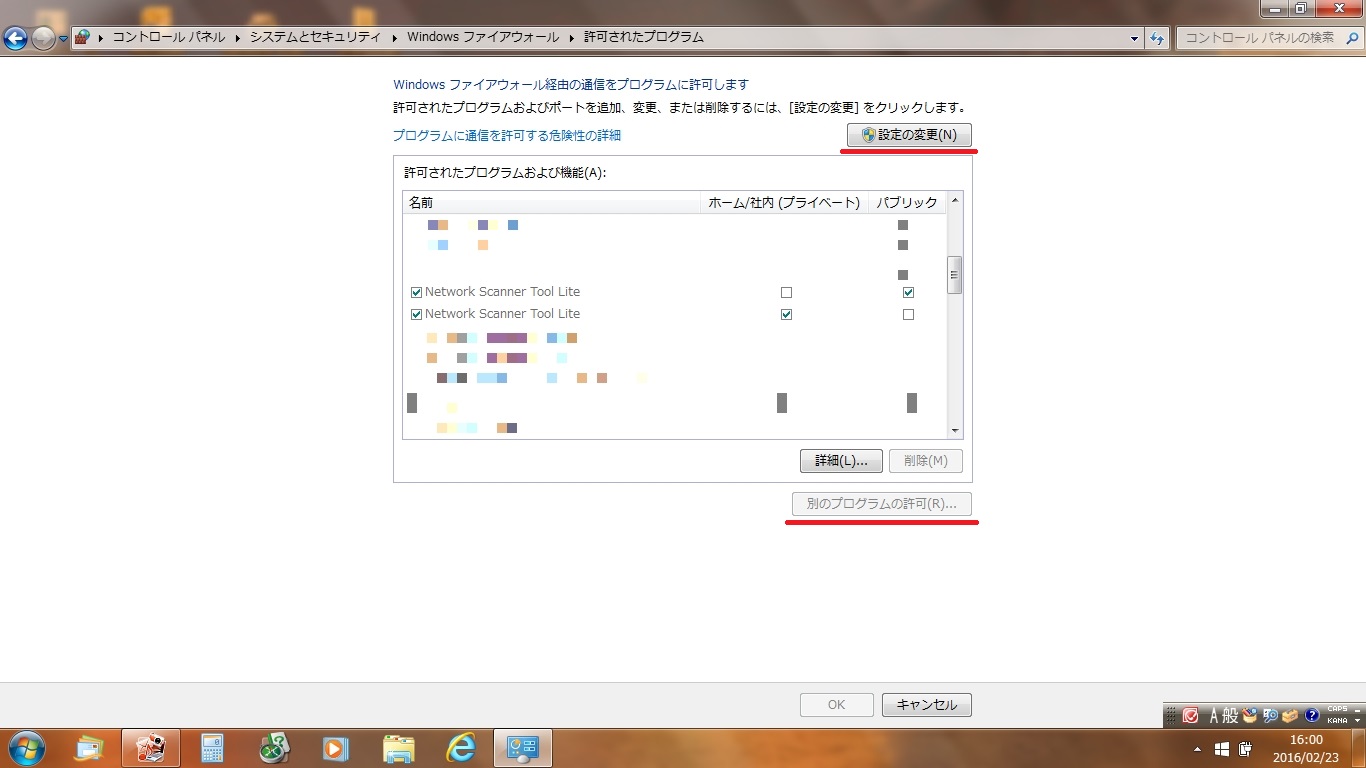コントロール パネル -> システムとセキュリティ -> Windows ファイアウォールによるアプリケーションの許可